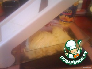 Выложить в кастрюлю слоями: слой остывшей рыбы, слой лука - чередуя.