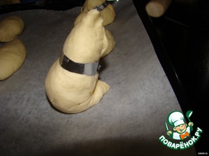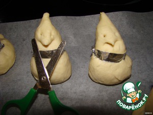 Накройте пироги салфеткой и дайте еще раз хорошо подойти тесту. (15 минут).. И только после этого берем ножницы и делаем надрезы на хвостике.. Клюв, крылышки и т п.))
