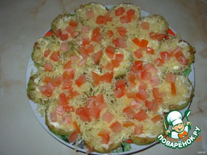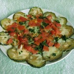 Нежное сочетание кабачка с сыром и помидором.