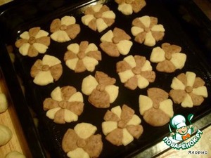 Заполняем смазанный противень по желанию цветиками любого варианта.