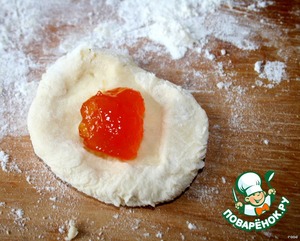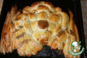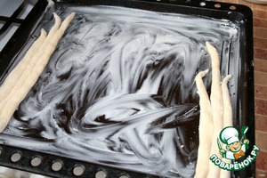 Соединить лепешку и придать ей нужную форму.Укладывать на противень, смазанный маргарином, я начала с камышей (камыши без начинки). |