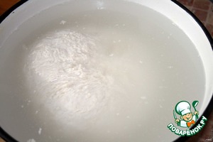 Опустить его в холодную воду, когда всплывет (у меня часа через два), вынуть, |