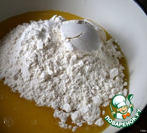 Дрожжи растворить в теплом молоке,добавить растертые желтки от двух яиц,сахар,соль и маргарин.Всапать муку |