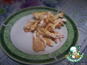 Несколько раз видела подобные хрустяшки под разными названиями: колючки, хризантемы... похожи на хворост, готовятся из двух компонентов.