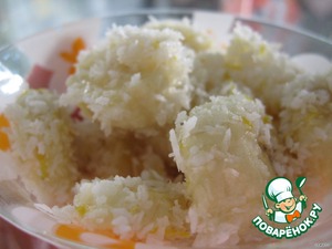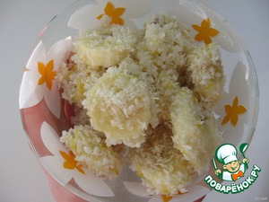 • Кокосовую стружку смешиваем с цедрой лимона, натертой на мелкой терке.