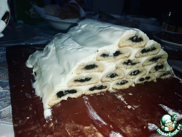 и уложить сверху 4 "бревнышка". Снова полить кремом