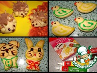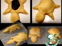 А теперь будем творить... Птичек вырезала формочкой. Для тела черепашек использовала пельменницу, лапки и головы - шарики, просто прикладываем плотно к "телу", при выпечке они сами приклеются. |