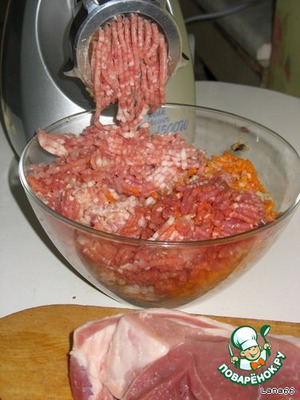 Замочить куски хлеба в воде (или молоке). Зелень и луковицу мелко порезать. Пропустить через мясорубку зелень и лук, затем хлеб (лишнюю воду отжать), очищенную морковь, мясо. Фарш хорошо перемешать. Добавить соль, перец, горчицу и желтки.