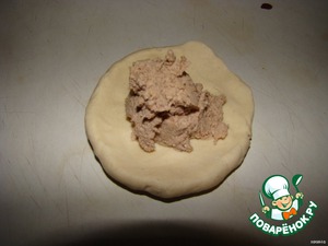 Для начинки я взяла паштет.Свой вариант печеночного паштета я показывала здесь https://www.povarenok.ru/recipes/show/16462/ Пирожки формируем круглыми, как беляши