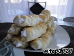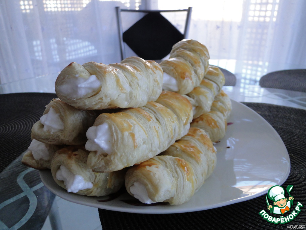Когда трубочки подрумянились, вытаскиваем их из духовки, остужаем, начиняем белковым кремом.