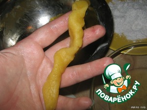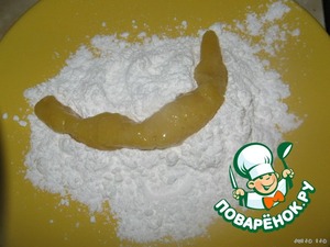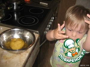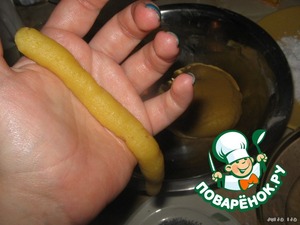 • Немного расплющиваем её. Аккуратно, тесто легко отрывается.