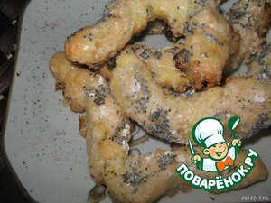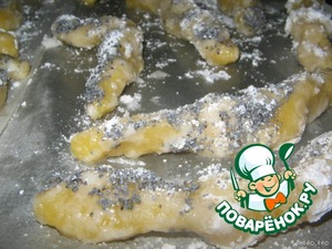 • И в мак... Выкладываем "ленточки" на застеленный пергаментом и смазанный маслом противень.