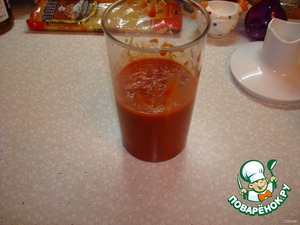 Помидоры, томатную пасту, готовый сус болоньезе смешиваем при помощи блендера до однородной массы.