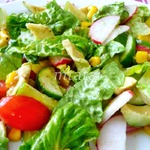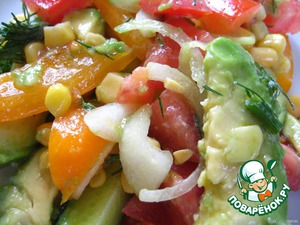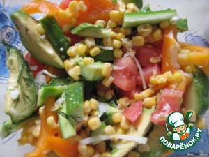 Все нарезанные овощи перемешиваем с кукурузой,