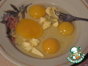 Пока масло греется, перемешать яйца - только смешать белок и желток - сильнее не надо.