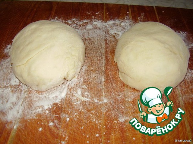 Выкладываем тесто на доску, присыпанную мукой, и еще раз обминаем