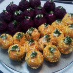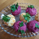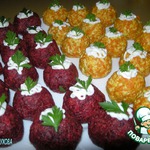 Свекольные шарики – свекла, сыр, желтки, селедка.