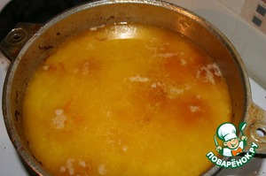 После того как морковь тоже слегка обжарилась, заливаем всё водой на 1-2 см, добавляем соль, специи, закладываем чеснок, горох, доводим до кипения и убавляем огонь, перемешивать больше не надо. Пусть наваривается потихоньку. Это называется Зирвак, кстати он должен быть слегка пересолен т.к. рис потом заберет соль.