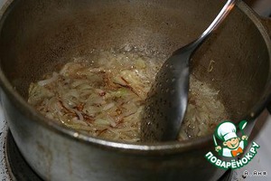 Затем в раскаленном жире обжариваем лук до золотистой корочки.