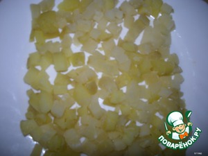 Картофель нарезаем мелкими кубиками.