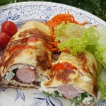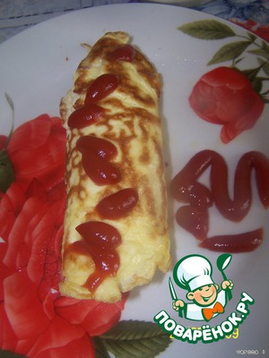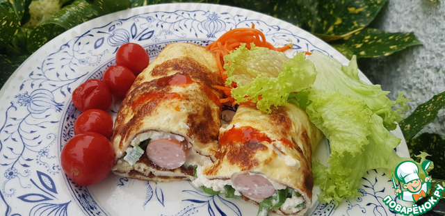 Яйца взбить, добавить молоко и выпечь два омлетика.