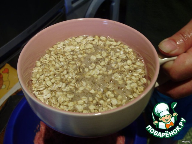 • Стакан геркулеса заливаем кипятком, накрываем блюдцем и даем ему набухнуть минут 10