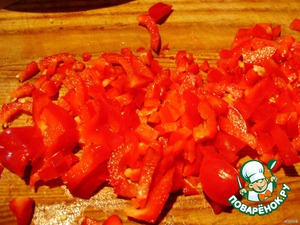 Довольно крупно режем паприку и тоже добавляем в фарш.