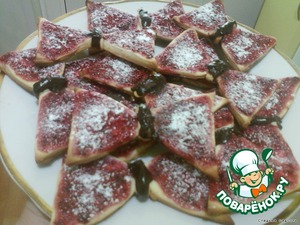 Растереть клубнику с сахарной пудрой и на мазать этой смесью бантики.