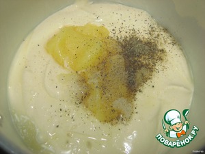 Смешать сметану с медом, солью, перцем, лимонным соком.