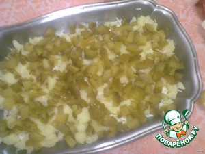 Очень вкусный салатик получился, но я внесла несколько изменений))) Вместо соленых огурцов взяла свежие. В след. раз положу соленые. Картошку смазала майонезом. А то майонеза нет вообще нигде, кроме как сверху. Так как мужа надо накормить посытнее, мужчина крупный, я след. слоем положила отварную присоленную грудку, и смазала майонезом, чтобы не была сухая. Следом как по рецепту-огурцы, сыр и смесь горчицы и майонеза. Сверху желток. ОБАЛДЕННЫЙ САЛАТ. БУДУ ГОТОВИТЬ ЧАСТО! СПАСИБО!