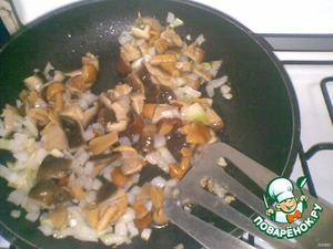 • Добавляем к луку и жарим вместе до золотистого цвета