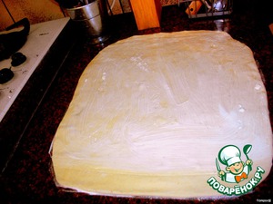 Пройтись слегка по смеси скалкой, чуть приминая её для удобства закручивания