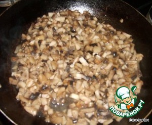 Пока рыба маринуется, потушить грибы, нарезать лук.