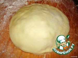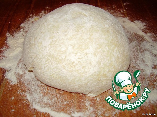 Достать тесто на доску, посыпанную мукой, и хорошо обмять.