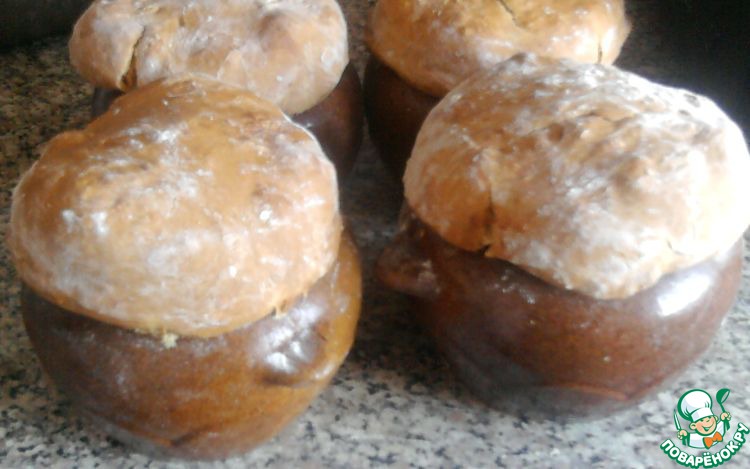 Эти чудо-горшочки научила меня готовить моя любимая мамочка, с тех пор я готовлю их и просто на ужин, и на праздники. Они всегда получаются вкусными, а хлебушек сверху пропитывается ароматом из горшочков и прекрасно их дополняет.