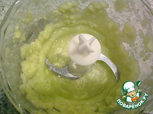 Кабачки очистить от шкурки. Нарезать кусками и измельчить в блендере до однородной массы. Немного посолить, чтобы пустили сок