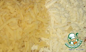 - Сыр твердый ("Гауда", 100 г в тесто, 30 г на присыпку) — 130 г