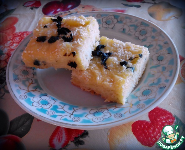 Через 15 минут посыпаем пирог сыром и кунжутом. А ещё через 15 минут получаем готовое лакомство.