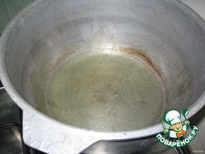 Ставим казан на газ и наливаем приблизительно стакан растительного масла, нагреваем его до тех пор, пока не появится дымок