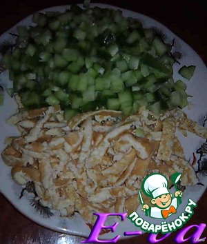 3. яйцо взбиваем со 1 ст. л. воды, солим и жарим омлет с двух сторон.