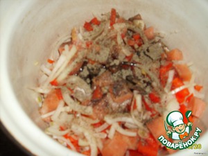 Лук - четвертькольцами, всё нарезанное перемешиваем, солим, перчим по вкусу.