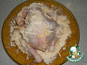Берем рябчика, натираем его солью и перцем не только снаружи, но и внутри. Затем обмазываем тушку взбитым белком и потом обваливаем в сырно-мучной смеси.