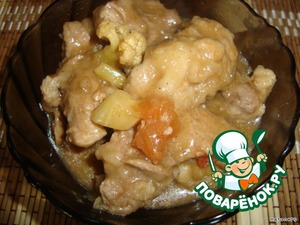 Теперь добавляем в мясо стакан кипятка, перец, соевый соус, уксус, имбирь и в конце соль - по вкусу. Тушим всю эту красоту минут 20.
