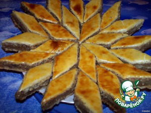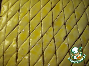 Вынуть испеченную баклаву из духовки, пройтись ножом по срезам