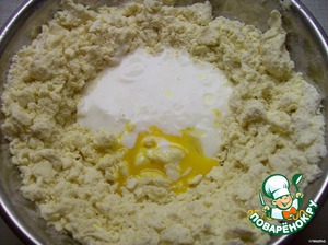 Сделать в муке углубление, налить 1 ст. кефира, 1 яйцо