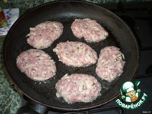 Сформировать из фарша котлетки, выложить на разогретую с растительным маслом сковороду. Обжарить с двух сторон до золотистой корочки.