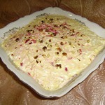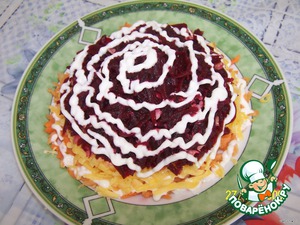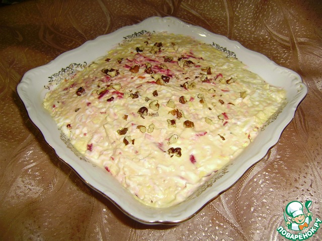 натереть вареную свеклу и смешать с мелко порубленными орехами, майонез -