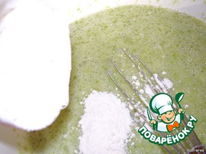 Муку и замесить тесто для блинов не очень густое.