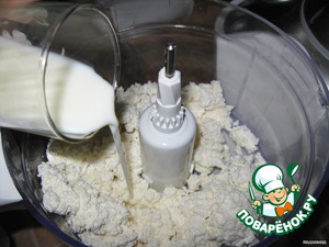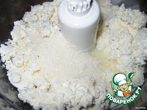 В отдельной посуде взбиваем белки в пену, постепенно добавляя сахар. И аккуратно вливаем в творожную смесь. -