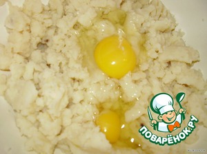 Картофель отварить в подсоленной воде, воду слить, потолочь, остудить, добавить яйца, соль и перемешать - картофельное пюре